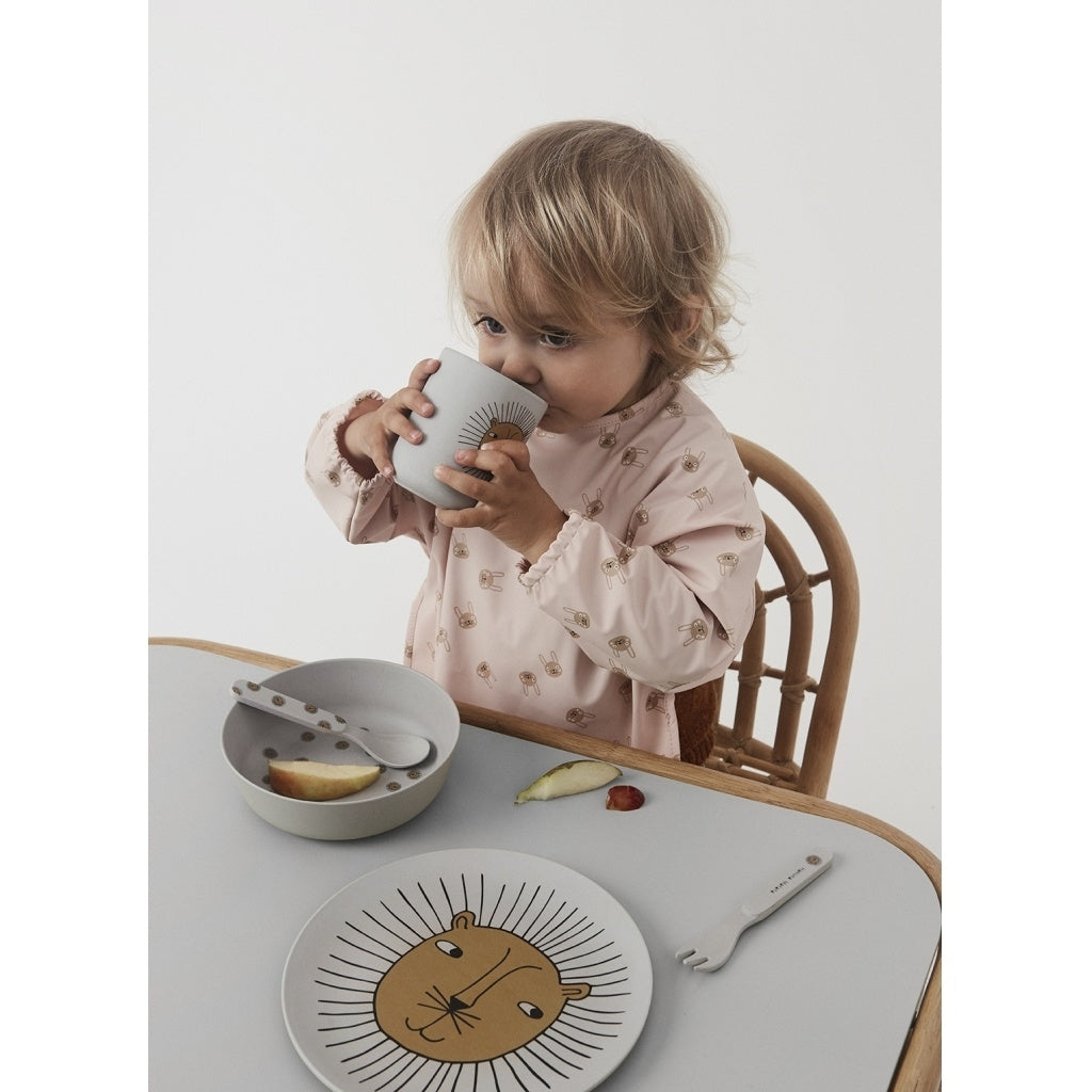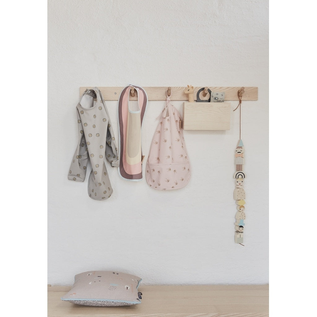 Dette fine forklæde fra Oyoy med lange ærmer og elastiske håndled er super praktisk, når den lille er at spise. Det måler 45x32,5 centimeter og kan vaskes ved 30 grader i vaskemaskine.