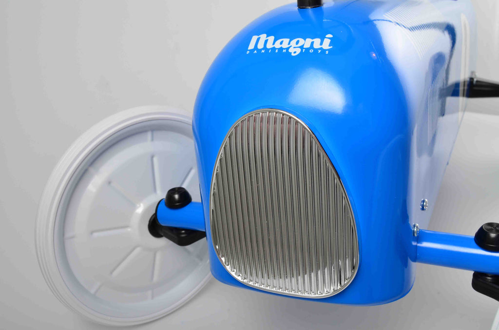 Det er en smuk metalvandrende bil i et sjovt og stilfuldt retro -design.