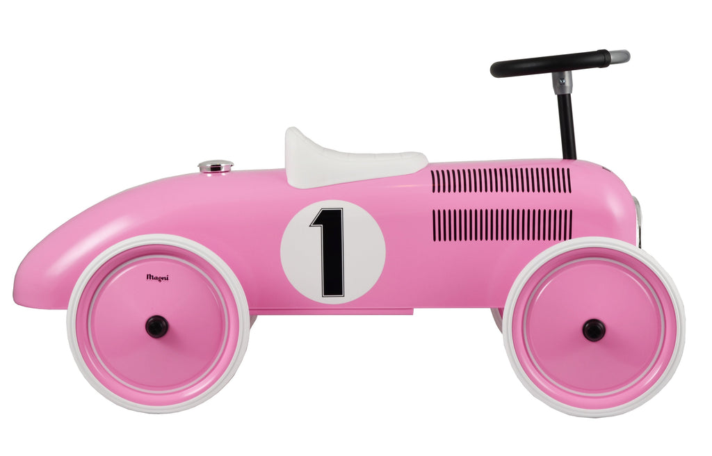 Det er en smuk metalvandrende bil i et sjovt og stilfuldt retro -design.