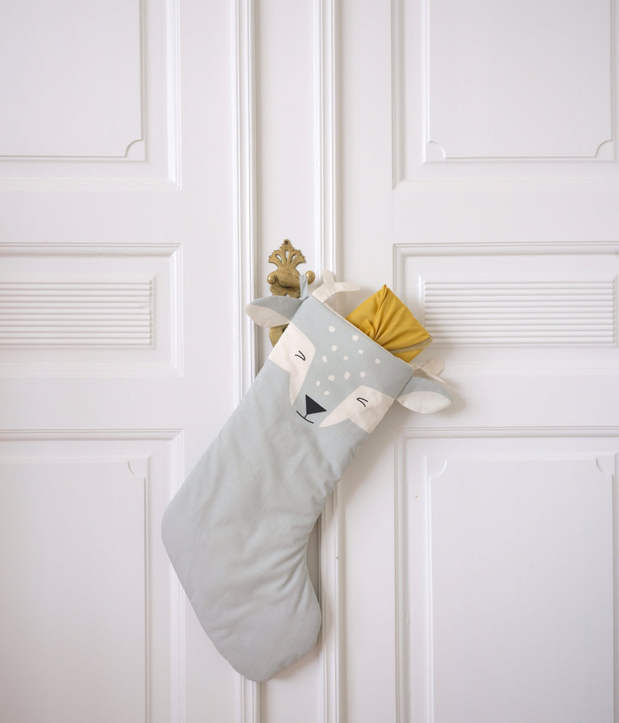 yndig julestrømpe fra Fabab, der repræsenterer en sød hjort/ren. Perfekt til jul, når plottet leveres med kalender- og/eller adventgaver.
