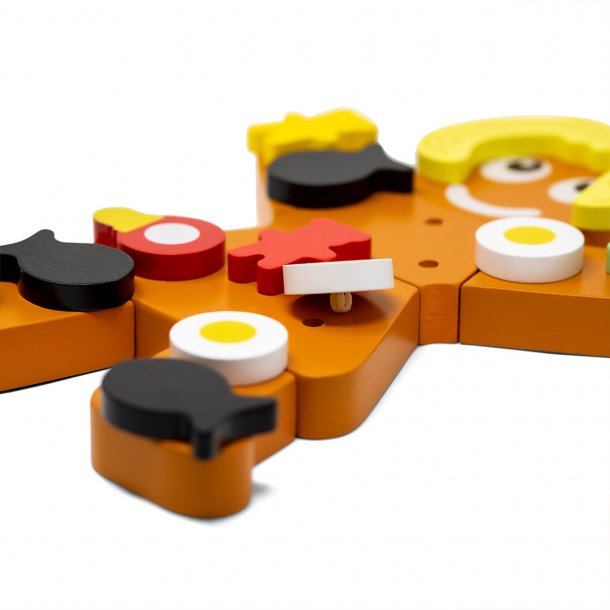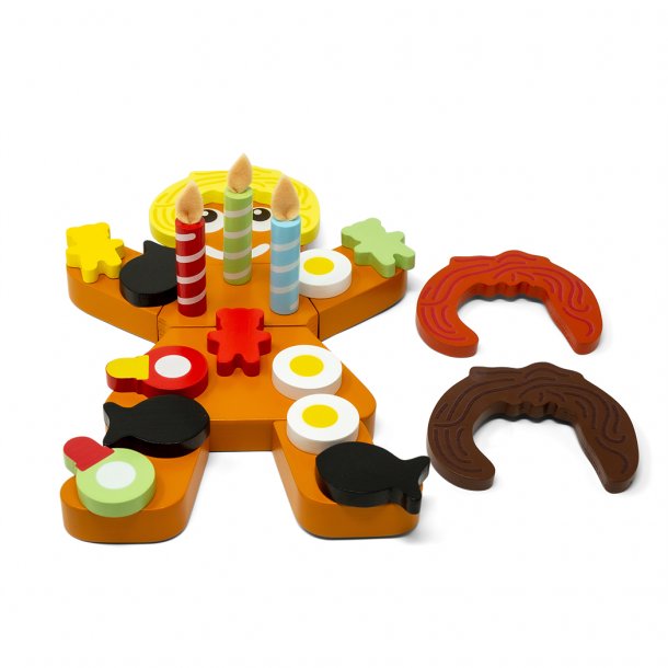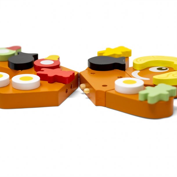 Kagen kan opdeles i flere stykker, og du sætter dem sammen ved hjælp af små plastikpropper. De er lidt stramme i begyndelsen, så forældrene kan hjælpe lidt mere, indtil de er lidt mere "slidte".