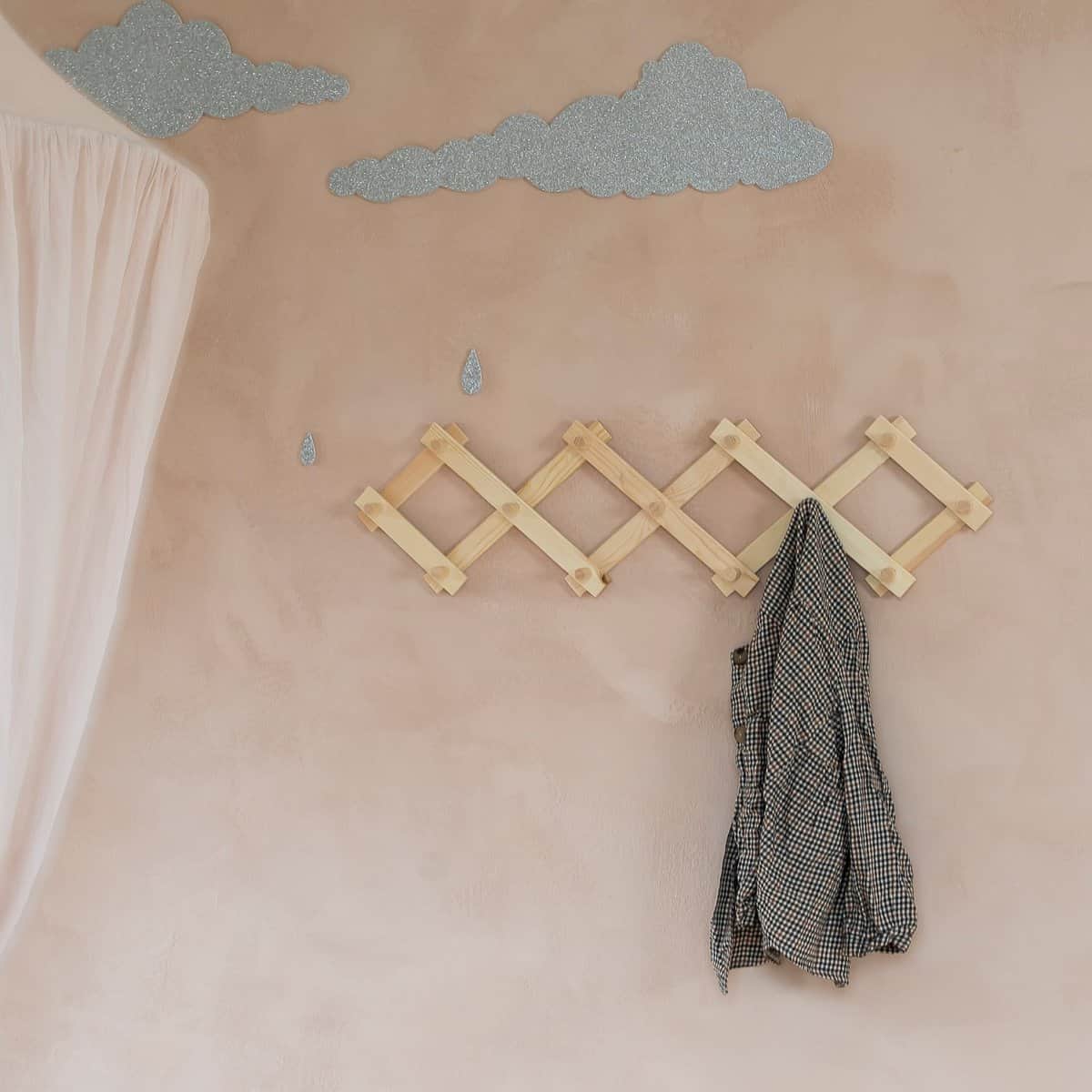 Beklædningshylden fra den er min er lavet af lys fyr, design passer ind i alle børns værelser - funktionaliteten og holdbarheden af ​​dette produkt er i en speciel klasse. Beklædningshylden kan også monteres vandret eller lodret.