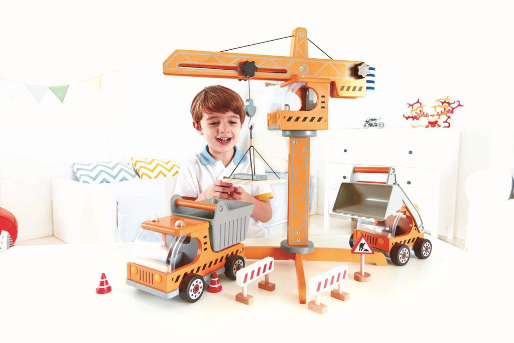 Nu er byggepladsen klar til at få en ny krandriver med super cool kran fra hape lavet af træ.