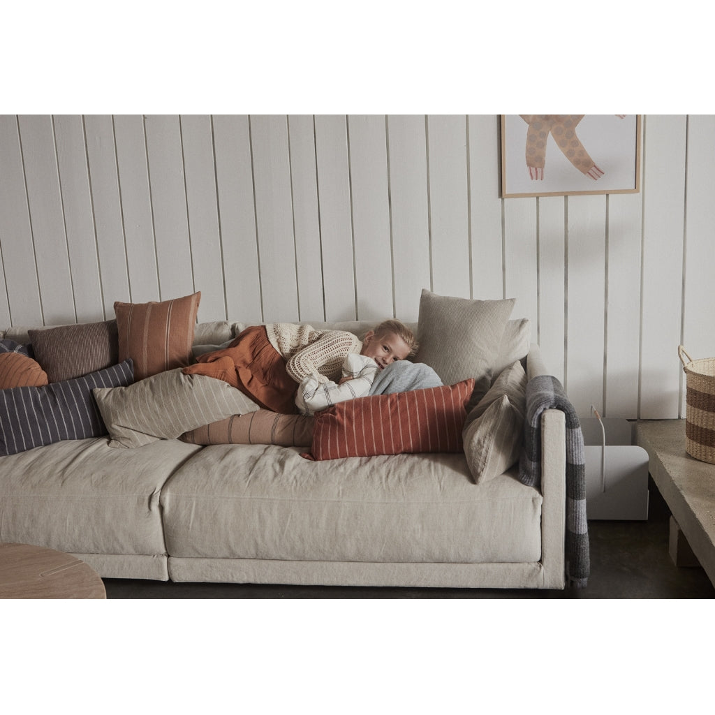 Denne dejlige pude er fra Oyoy. Det har et minimalistisk og nostalgisk design med små hvide striber. Det er vævet i organisk bomuld og fyldt med ned og fjer. X B: 60 cm