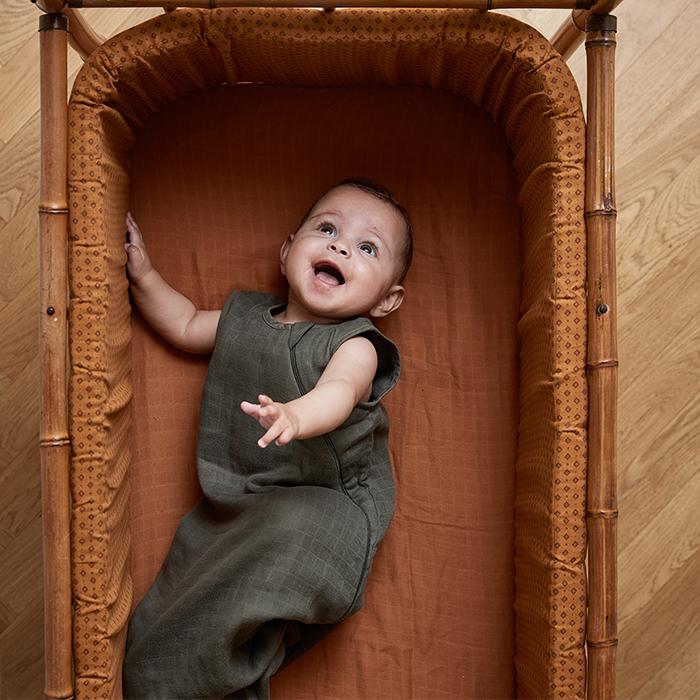 Babylakanet er et loopark, lavet af muslin stof, der giver huden mulighed for at trække vejret og ventilere under søvn. Et blødt og praktisk grundlag for dit barns dedikerede hud.