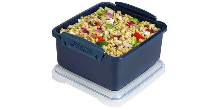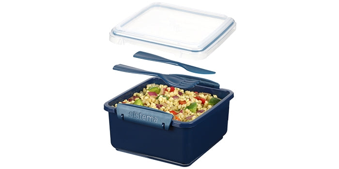 Fin madkasse fra Sistema med inkluderet bestik. På denne måde bliver mulighederne for frokost bredere, og barnet kan bringe mere variation. Fødevareboksen kan også let bruges uden bestik.