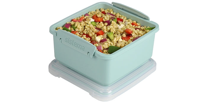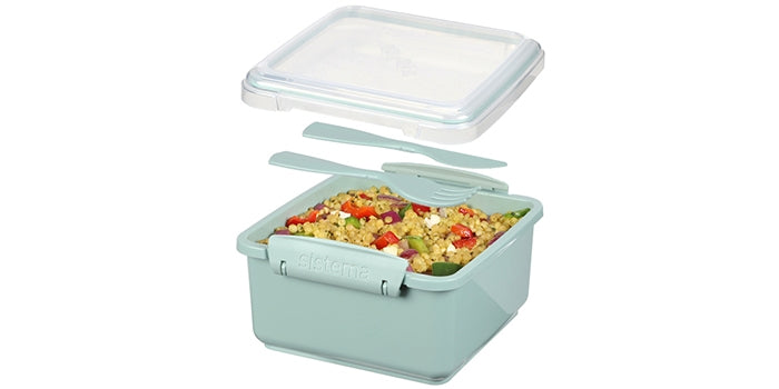 Fin madkasse fra Sistema med inkluderet bestik. På denne måde bliver mulighederne for frokost bredere, og barnet kan bringe mere variation. Fødevareboksen kan også let bruges uden bestik.