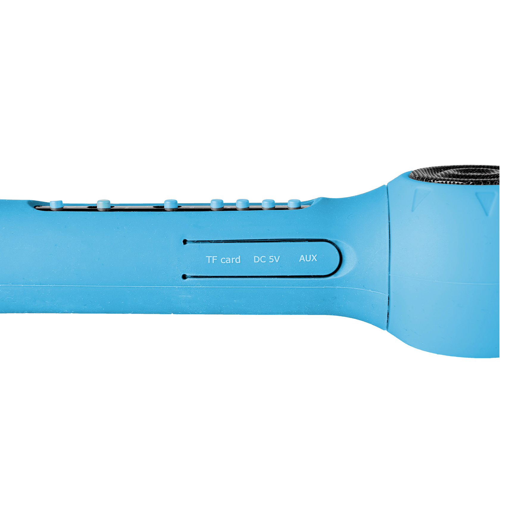 Denne mikrofon og højttalere har mange forskellige funktioner. Dette er blandt andet Ekko -effekten, der ønsker at gøre Sangene til nogle Jjovere til barnet - det er en funktion, der bestemt ønsker at blive elsket. Det har et batteri som indehaver i lang tid, og det er genopbygget, så mikrofonen og den heroiske kan brygge igen og igen. Børns hær. Farven symboliserer kreativitet og styrke, og den ønsker at være en smuk udsmykning på Buelneværemet. Jeg kan også stå og brygge som en højttaler, hvordan det ønsker at skabe en livlig atmosfære.