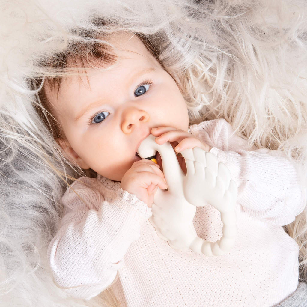 Svanen bitring fra Natruba har forskellige overflader, der stimulerer barnets sanser og Velegnet til spil.