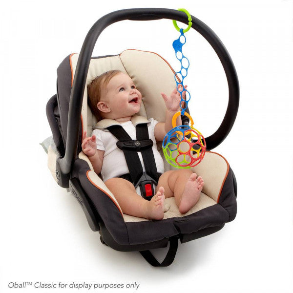 o-link er til at hænge andet legetøj med f.eks. Oball Classic. Det kan hænge i både klapvogne, bilsæder og aktivitetsstativer. O-link er 30 cm. lang.