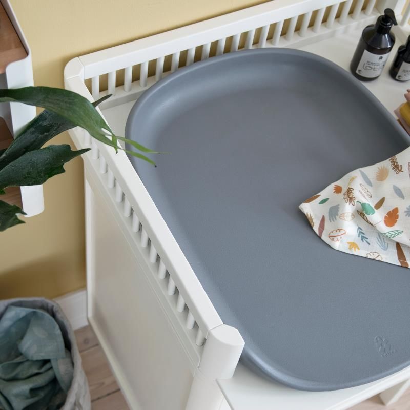 Med denne plejepude fra Sebra kan du gøre bleen til at ændre en behagelig oplevelse. Omsorgsbasen har en blød og vandrepellent overflade, hvilket er let at rengøre. Formen på plejeoverfladen har en høj kant, som hjælper med at forhindre barnet i at rulle fra underlaget. Desuden sikrer den bløde kant, at det aktive barn, der bevæger sig ved bleændringen, ikke rammer en hård bagvæg eller kanten af omklædningstabellen.
