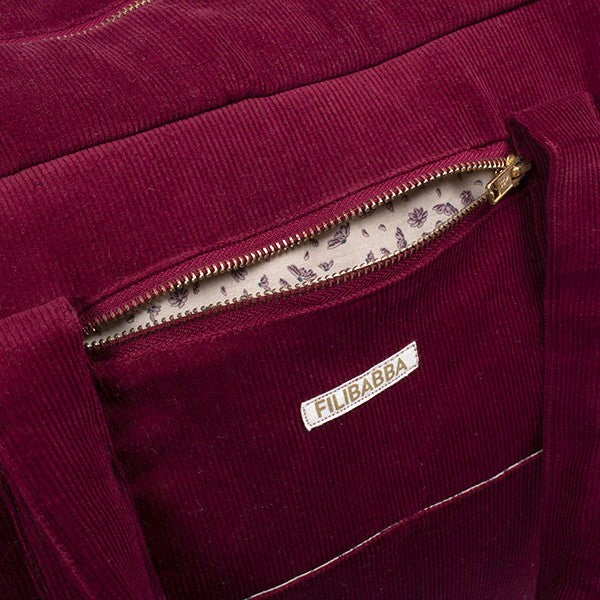 Denne bærepose er inkluderet i Filibabbas fløjlsserie. Den er designet til mor og barn og er virkelig praktisk, når du går ud på en tur. Denne taske indeholder mange små rum, så du kan nemt organisere din bæretaske og holde styr på, hvor alle dine ting er.
