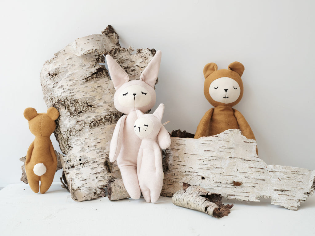 Dejlige små rangler fra Fabab, der ligner en kanin. Det er lavet af blød, organisk bomuld. Hvis babyen ryster rangle, høres en lille raslende lyd, som vil opretholde og tiltrække den lille opmærksomhed. Br>