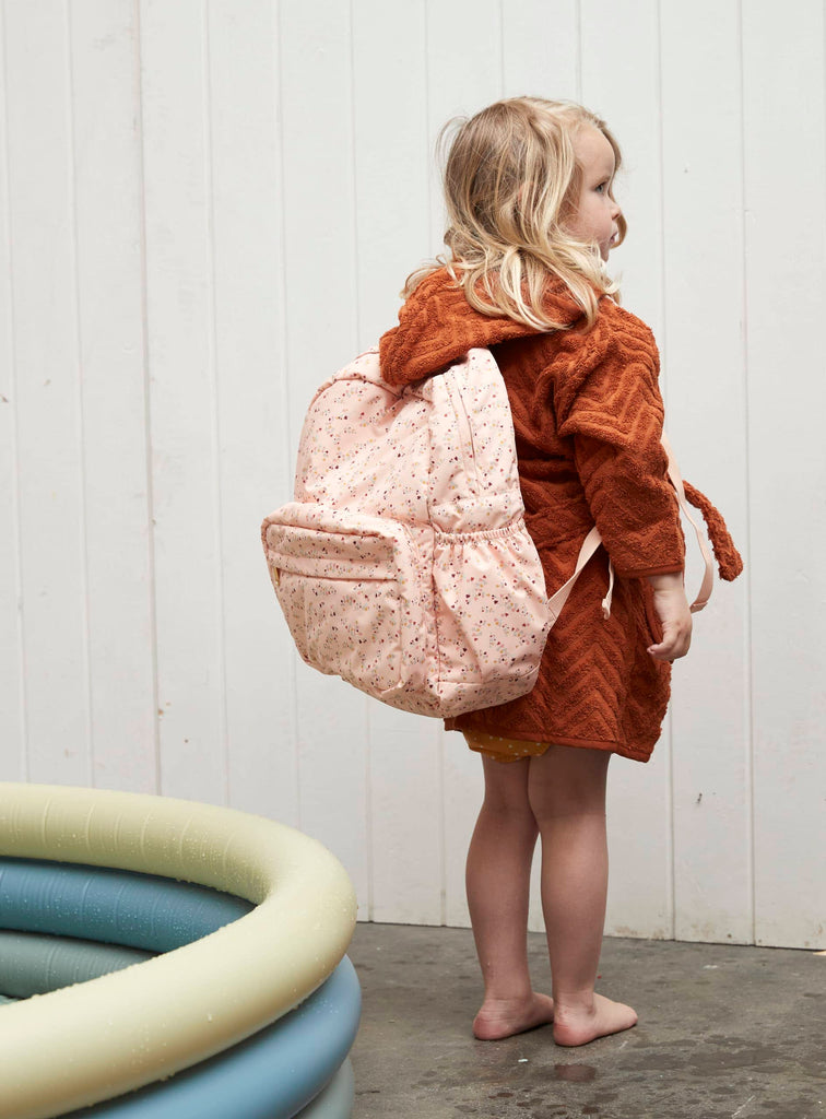 Denne taske er ideel til turen og vil være en sikker taske til dit barn, fordi det er lavet af et vandtæt materiale. På denne måde er det smart til en tur til stranden. Her vil tingene blive tørre, selvom det falder på posen. På turen, når det begynder at regne der er ingen frygt hverken for våde ting og sager på grund af det vandtætte materiale. Dette vil være en egenskab, der helt sikkert vil blive elsket.