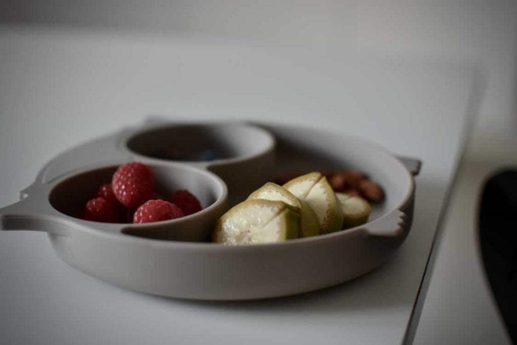 Virkelig flot børneplade i silikone, som barnet vil elske. Lavet med et Owlia -tegn. P> sikker kontakt med mad (LFGB -certificeret)