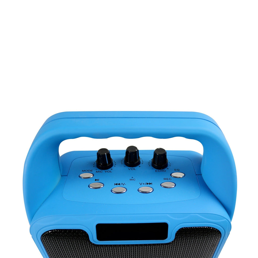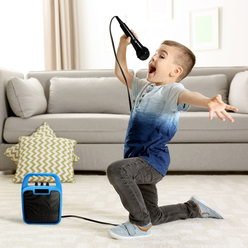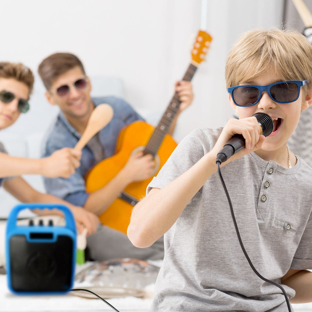 Taleren er klar til at starte hjemmet. Taleren er Bluetooth, så dit barn kan tage på sine yndlingssange og synge i mikrofon er på scenen på en vild koncert. Mikrofonen er ikke trådløs, men kablet.