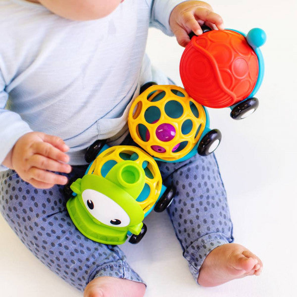 søde obstet -tog, som er perfekte til sjov og leg. Babyens små fingre kan let få fat i det rullende tog og fjerne det fra hinanden. Styrker fine motoriske færdigheder og hånd/øjenkoordinering.