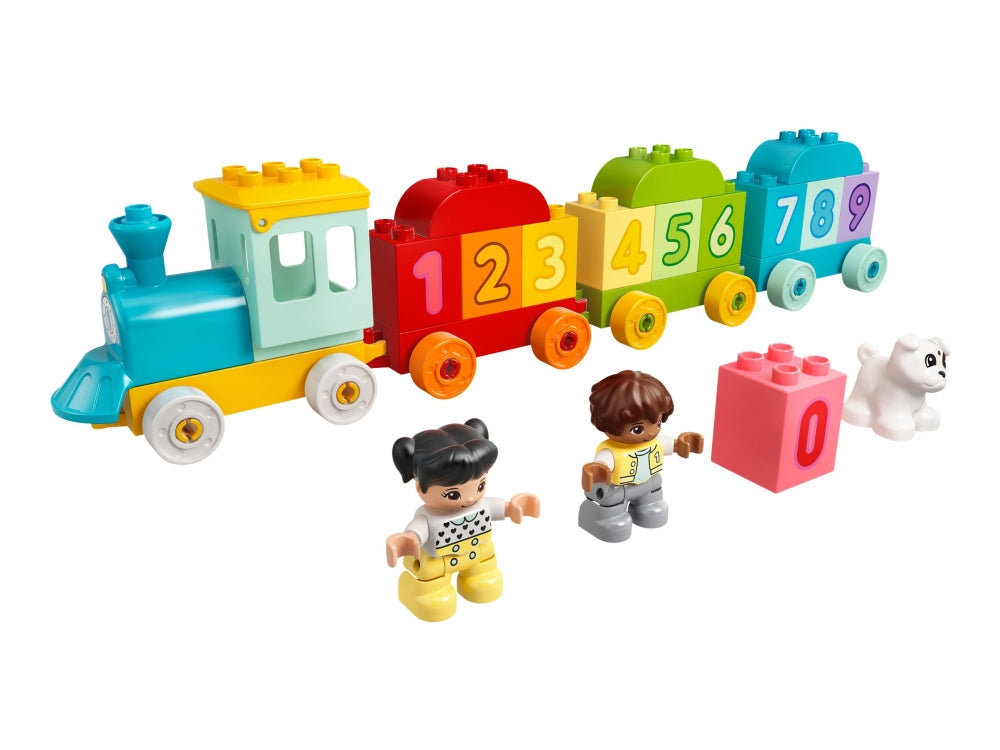 Dette togsæt introducerer en masse glæde og leg, hvor barnet også kan tælle og lære tallene bedre at kende.