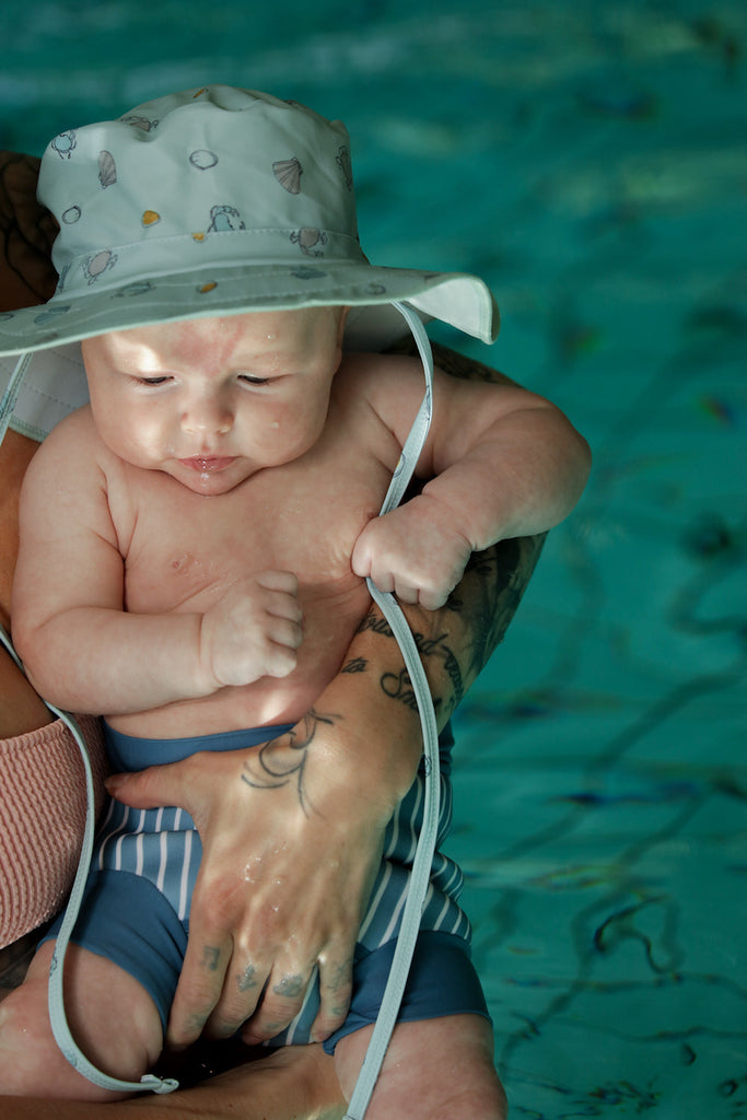 Reversible UV SIM HAT - Havtrykgrøn (størrelse M - 6-18 måneder)