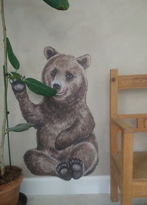 Vægklistermærke med Bruno den brune bjørn. Vægklistermærket er let at bevæge sig rundt og efterlader ingen mærker på væggen.